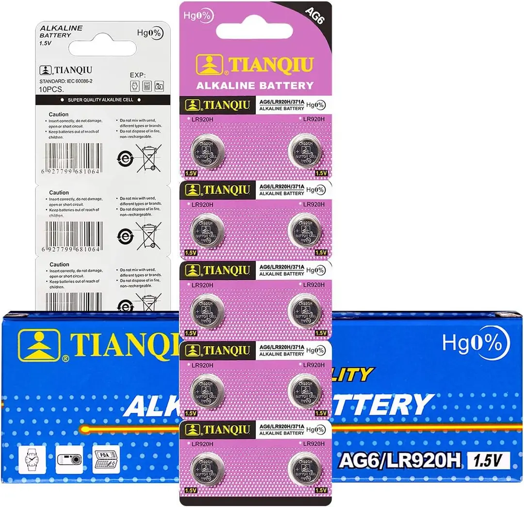 TIANQIU AG6 saat pili, düşük güç tüketimli elektronik cihazlar için üretilmiş, stabil voltaj sunan güvenilir bir alkalin pildir. 10’lu paket avantajıyla hem bireysel kullanım hem de yedekli stok için uygundur.